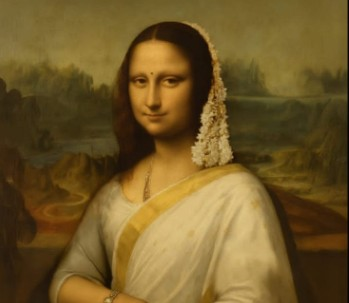 The ‘new’ image shows the woman of the Renaissance masterpiece draped in Kerala’s iconic off-white kasavu saree, her hair adorned with jasmine flowers.