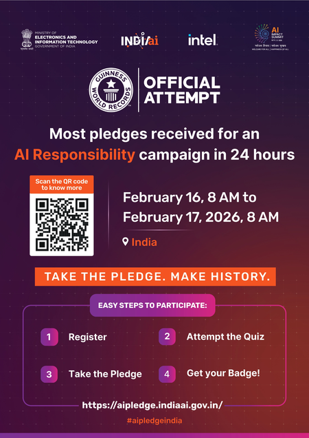 New Delhi, Feb 11 (IANS) IndiaAI, in collaboration with Intel India, will attempt an official Guinness World Records title for the “Most pledges received for an AI responsibility campaign in 24 hours” next week on February 16–17.