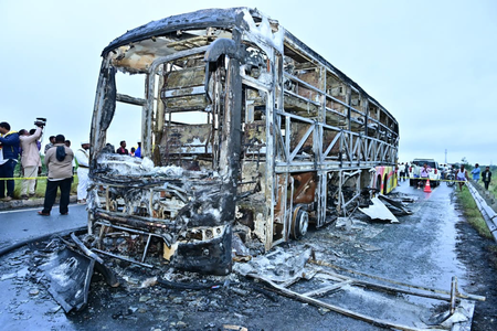 Kurnool (Andhra Pradesh), Oct 24 (IANS) As many as 19 passengers were burnt alive as a private Volvo bus carrying over 40 people caught fire after hitting a two-wheeler in Andhra Pradesh’s Kurnool in the wee hours of Friday.