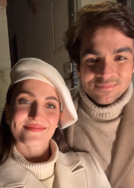 The video shows Ashish and Elli twinning in stylish cream winter attire.