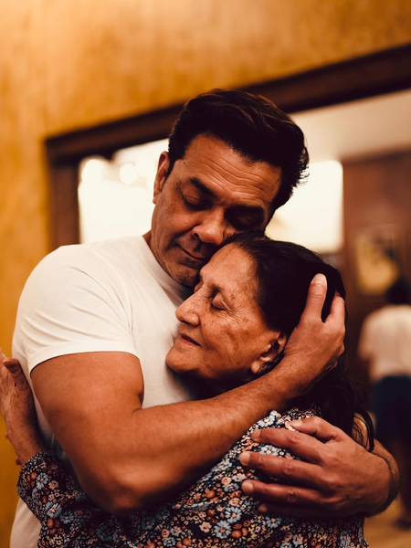 Bobby took to Instagram, where he shared two pictures. The first photograph featured the actor lovingly hugging his mother. The second image had him taking a selfie with his mother and brother Sunny Deol.