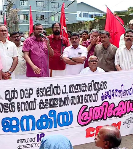 Thachankary retired as Kerala DGP in 2023. The agitation was organised under the leadership of the Thammanam local committee and drew participation from a good number of party workers.