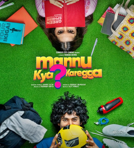 The production house Curious Eye Cinema shared the maiden poster of the upcoming film. The poster features Vyom and Saachi lying on green grass. While Saachi holds a red book titled “Green Sphere” that covers part of her face, Vyom is seen holding a football in front of his face.