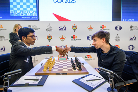 Panaji, Nov 11 (IANS) Grandmaster (GM) Arjun Erigaisi, GM Karthik Venkataraman, and GM P. Harikrishna split points with black pieces while R. Praggnanandhaa survived a scare with white against GM Daniil Dubov in the first game of Round 4 in the FIDE World Cup 2025 in Panaji, Goa, on Tuesday.