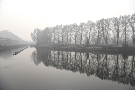 The morning fog and clear night sky added to the chill factor in Srinagar city this morning as pedestrians and motorists moved out with caution to negotiate the slippery streets and roads in the city.