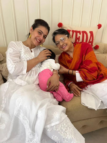 Following this, Kajol was seen playing with Veda in the photographs captioned: “And here are some happy baby pics including Baby Tanuja (yes she’s the one wearing white sitting next to me).”
