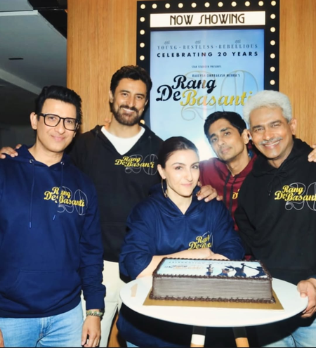 “20 years later – we showed up! A few were missed but the spirit was still (fire emoji) #rangdebasanti 🇮🇳 #twentyyearsofrangdebasanti #reunion,” the caption on the post read.
