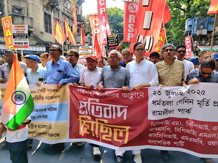 Kolkata, July 23 (IANS) Left parties in West Bengal, led by CPI(M), on Wednesday, took out a protest march in Kolkata to condemn the alleged harassment of Bengali-speaking people in BJP-ruled states.