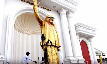 Chennai, July 15 (IANS) Miscreants defaced a statue of former Chief Minister M. Karunanidhi by splashing black paint on it in Tamil Nadu’s Salem district, triggering widespread condemnation and unrest among locals and political cadres.