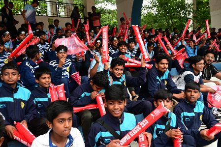 The evening began on a vibrant note, with traditional festivities at the stadium gates. Schoolchildren, among the first to arrive, filled the stands with cheers and infectious energy, creating a lively atmosphere. A dazzling light show and live music and dance performance set the tone for the evening.