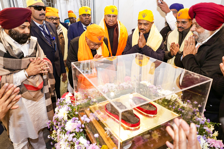 Patna, Dec 27 (IANS) Amid the celebrations of the 359th Prakash Parv in Patna, Bihar Chief Minister Nitish Kumar visited Takht Sri Harimandir Ji Patna Sahib Gurdwara, where he bowed his head in reverence and prayed for the peace, prosperity, and well-being of the state.