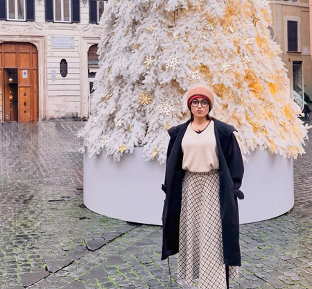 Taking to Instagram, the ‘Animal’ actress gave a peek into her fun-filled getaway and cheerful festive moments. Rashmika dropped a couple of her photos and captioned them simply as, “Merry Christmas my loves!.” In the photos, she could be seen striking various candid poses for the camera. The first image shows the ‘Pushpa’ actress posing with her arms open against the backdrop of a beautiful tree. Rashmika is seen dressed in a long black coat paired with a top and skirt, completing her look with a hat.