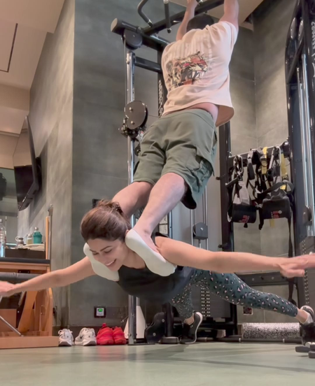 Highlighting the importance of trust and strength, the actress posted a candid video where she hilariously admits that while she trusted her partner, her “tiny feet” couldn’t quite hold on to the “giant shoulders.” Taking to her Instagram handle, the ‘Mohabbatein’ actress shared a video where she is seen performing a set of exercises with her gym partner.