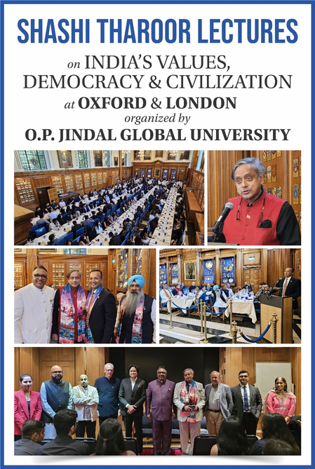 The landmark events were organised by O.P. Jindal Global University (JGU), India’s leading private university and an Institution of Eminence. The lectures were held at University College, Oxford, and Somerville College, Oxford, and at the Honourable Society of the Inner Temple in London.