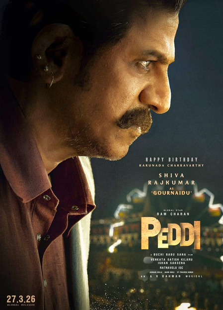 Taking to its X timeline, Vriddhi Cinemas, one of the production houses producing the film, wrote, “Team #Peddi wishes the ‘Karunada Chakravarthy’ @NimmaShivanna Garu a very Happy Birthday. ‘GOURNAIDU’ will be regal and explosive on the big screens. #PEDDI GLOBAL RELEASE ON 27th MARCH, 2026. Global Star @AlwaysRamCharan @NimmaShivanna #JanhviKapoor @BuchiBabuSana.”