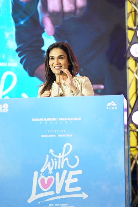 Participating in the pre-release event of director Madhan’s ‘With Love’, Soundarya Rajinikanth, who is the producer of the film, said, “I had called director Venkat Prabhu to invite him for this film’s event. He told me that that it had been 16 years since our film ‘Goa’ released. It has been 16 years since I wore the producer’s hat. I manifested that I would definitely come back with a team such as the “With Love’ team and my manifestation has happened. I am so happy, proud and honoured to come back.”