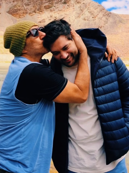 The father-son duo posed at the Baralacha La Pass, a high mountain pass in the Zanskar range of Northern-India,connecting Lahaul district in Himachal Pradesh to Leh district in Ladakh.