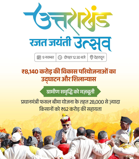 New Delhi, Nov 8 (IANS) Prime Minister Narendra Modi will visit Dehradun on Sunday to join Uttarakhand’s Silver Jubilee celebrations and inaugurate and lay the foundation stone for various development projects worth more than Rs 8,140 crore.